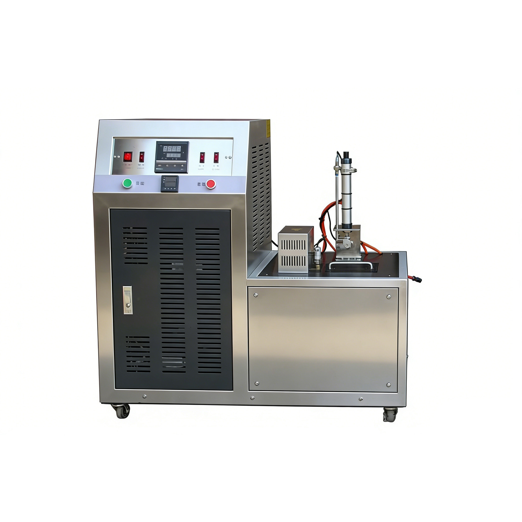 本系列设备采用进口双压缩机复叠制冷技术,采用热平衡原理及循环搅拌方式,达到对试样的自动均匀冷却、恒温,本设备采用单片机技术控制、数显温度值、自动控温、自动计时、自动报警,操作简便安全,制冷速度快,容积大,控温精度高,是材料低温冲击试验中试样冷却、保温设备。同时亦可用于其他低温检测和试验工作。更换辅具也可用于塑料的低温测定试验。(根据客户需要可分别满足 GB/T15256《硫化橡胶或热塑性橡胶低温脆性的测定(多试样法)》、GB/T 1682《硫化橡胶低温脆性的测定 单试样法》国家标准)。