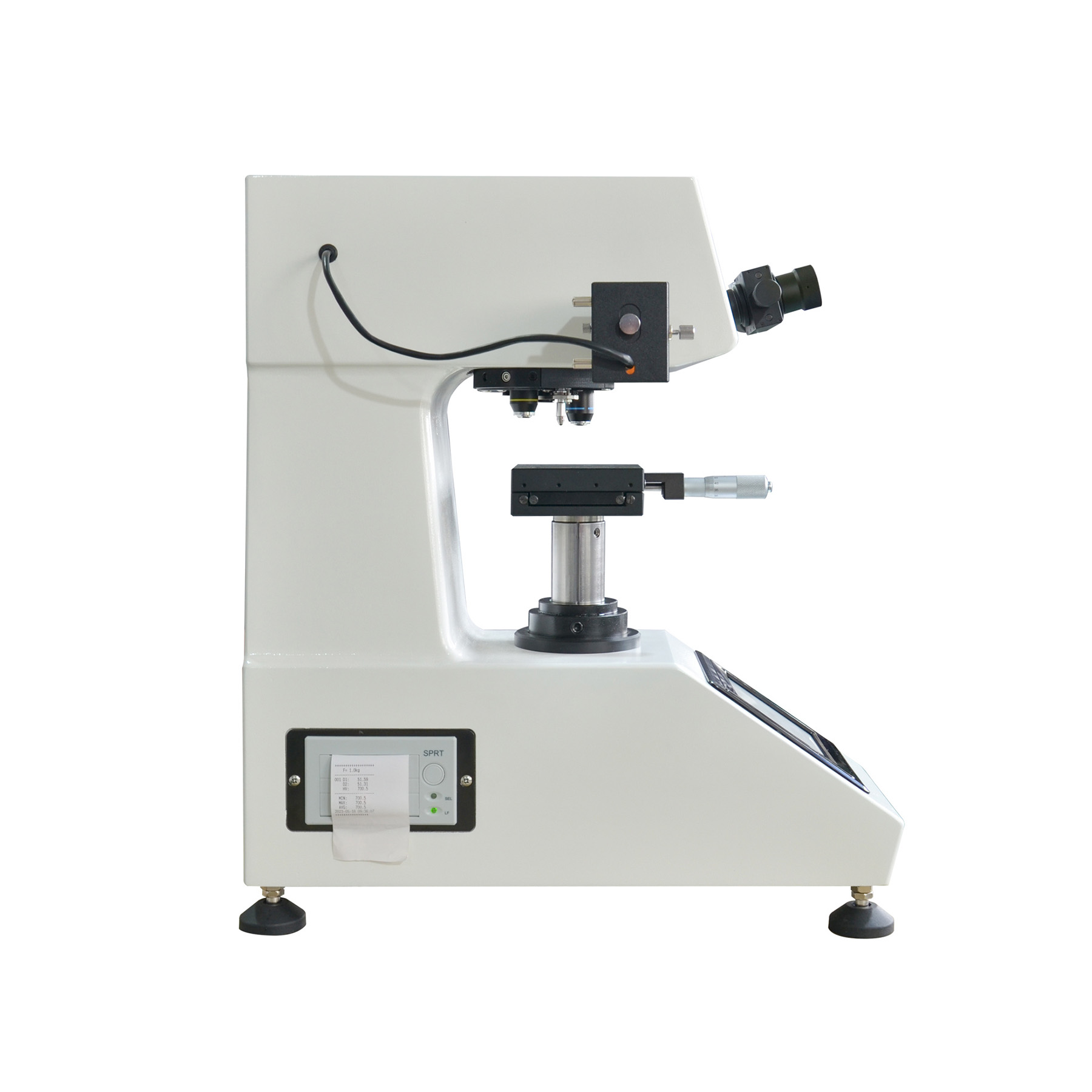 iPM-2000Z数显显微维氏硬度计,在机械、光学、光源上采用独特精密设计,使压痕成像更清晰,测量更精确。配备数显测微目镜,不用查表,也不用输入压痕对角线,该仪器采用全新的高分辨率彩色触摸屏,显示直观清晰,操作方便,显示屏背光可调、具备节能模式,在触摸屏上直观地显示试验方法、试验力、压痕长度、保荷时间、转换标尺、时间等,操作时只要测量压痕按目镜按钮,即可自动计算出硬度值并显示在屏幕上。数据结果可以保存通过表格查看,也可通过内置打印机选择性打印输出,并配有RS232接口供用户连接电脑输出。可选配努氏压头进行努氏硬度测量,可定制2kg试验力,也可选配CCD图像自动测量系统。