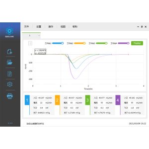 测试界面上动态显示每个样品的吸附过程,吸附峰实时显示,每个样品的BET比表面积实时计算。